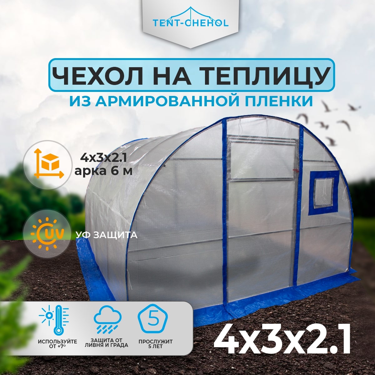Чехол из армированной пленки 2,10*3,0*4,0 для теплицы