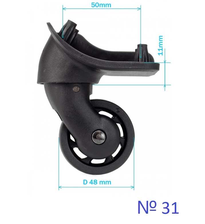 • Размеры необходимой детали. Естественно, по своему размеру колесо полностью должно совпадать с тем, которое осталось в целости. Если его размер будет большим или меньшим, то по дороге чемодан будет катиться с перекосом. Лучше всего выбрать оригинальную запчасть, так она подойдет по размерам.